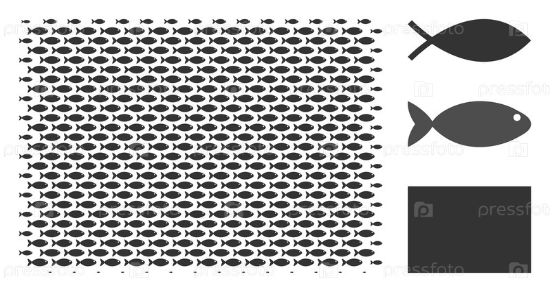 Векторные рыбные пиктограммы сгруппированы в заполненную прямоугольную мозаику. Концепция экологического дизайна