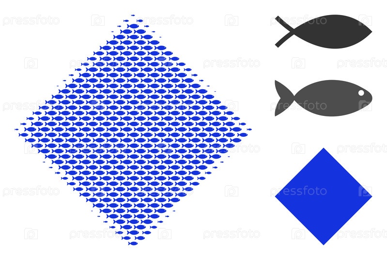 Векторные рыбные пиктограммы формируются в заполненный коллаж ромба. Концепция дизайна рыболовства
