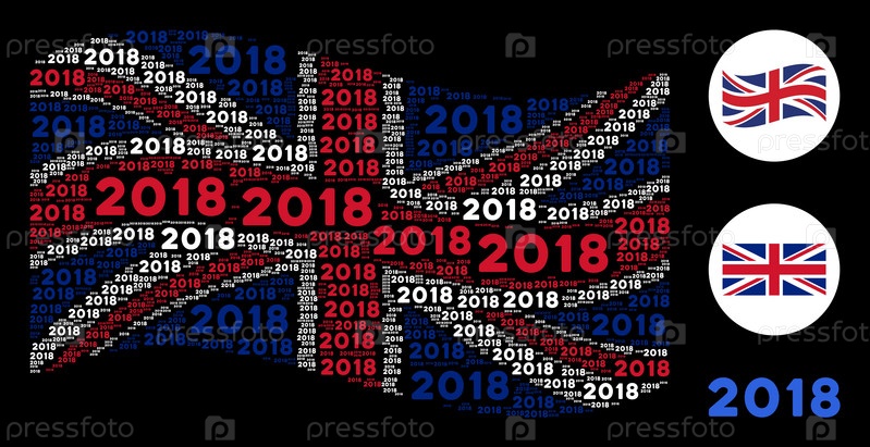Векторальные тексты 2018 года объединены в иллюстрацию флага Соединенного Королевства с мозаикой