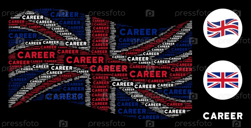 Векторальные тексты карьеры объединены в мозаичный коллаж с флагом Великобритании