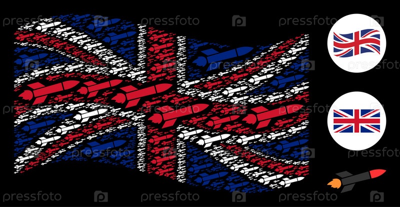 Машущий флаг Соединенного Королевства Образец значков запуска ракет