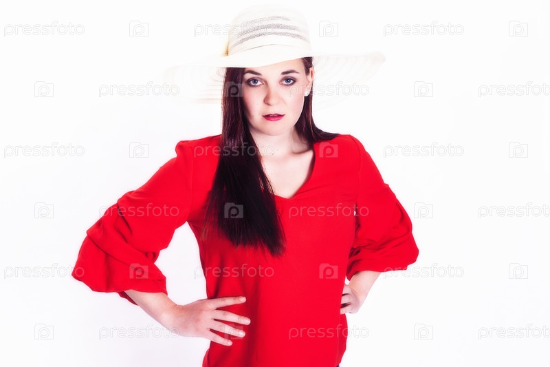Молодая женщина с длинными волосами и солнечной шляпой