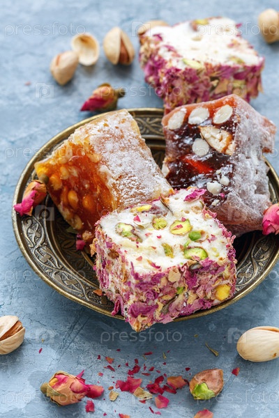 Турецкое удовольствие с фисташками, розовыми лепестками и миндалями