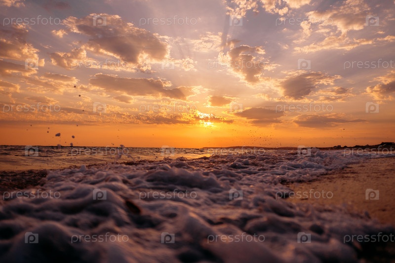 Близкий план морских волн и заката