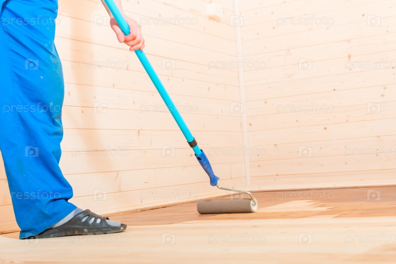 Процесс покраски нового деревянного пола в доме