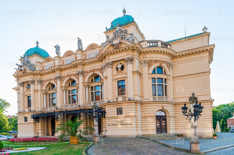 Красивое здание Театр им. Юлиуш Словацкий драматический театр в центре Кракова, Польша