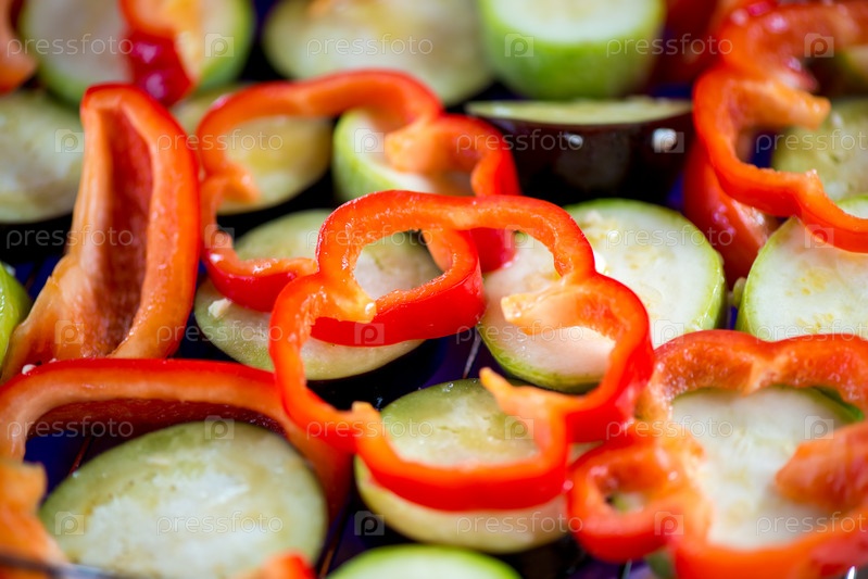 Свежий перец и баклажаны крупный план перед грилом