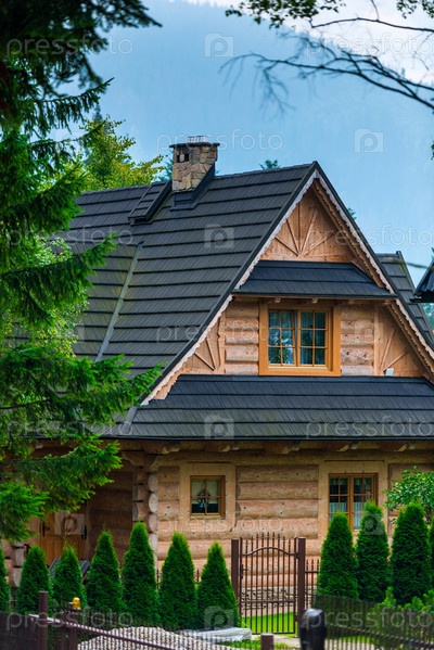 Дом из бревна с красивым двором в европейском стиле