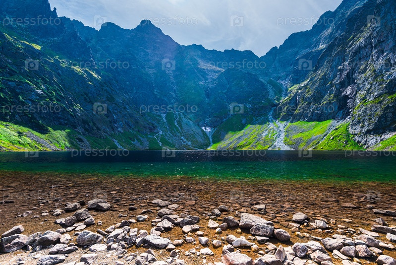 Красивое живописное озеро в Татрских горах Черный Став, Польша