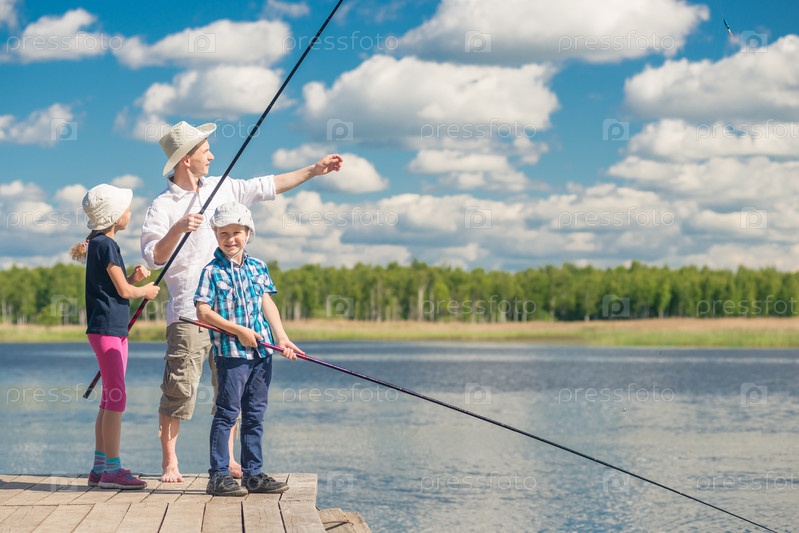 Девочка и мальчик с папой учатся ловить рыбу, ужинают на выходных