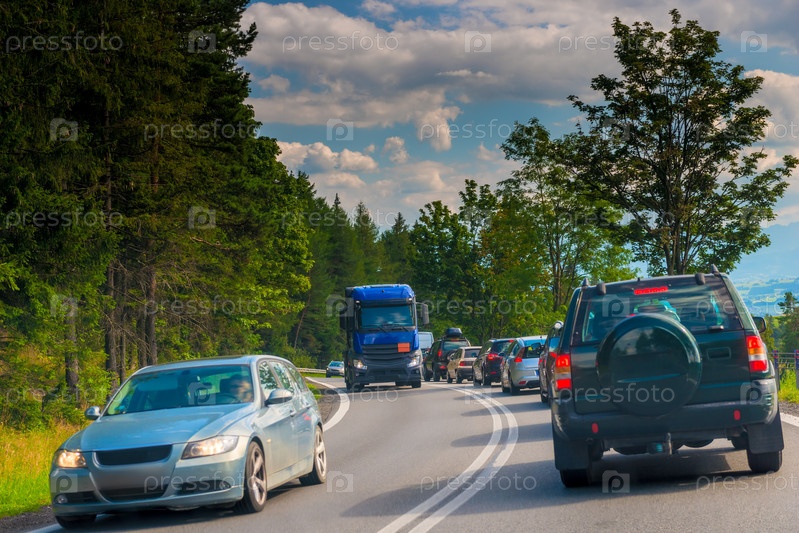 Пробки на сельской дороге в солнечный день