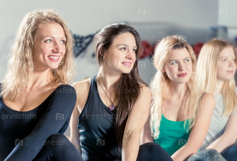 Портрет красивых девушек в спортзале во время тренировки