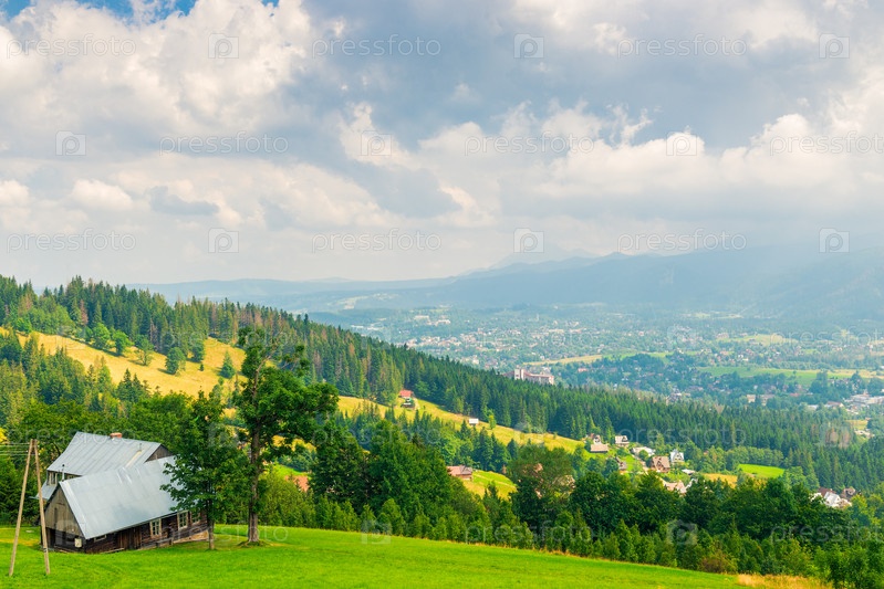 Вид с высоты красивого дома в долине гор в Польше