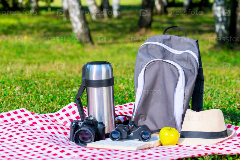 Близкий план на скатерти в парке - объекты для пикника и отдыха уставшего туриста