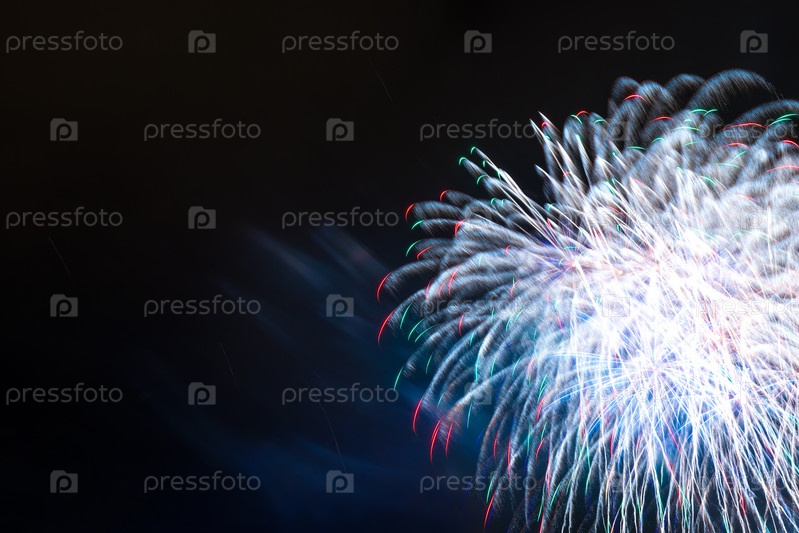 Фональные фейерверки из неонов в темном ночном небе, красивые брызги