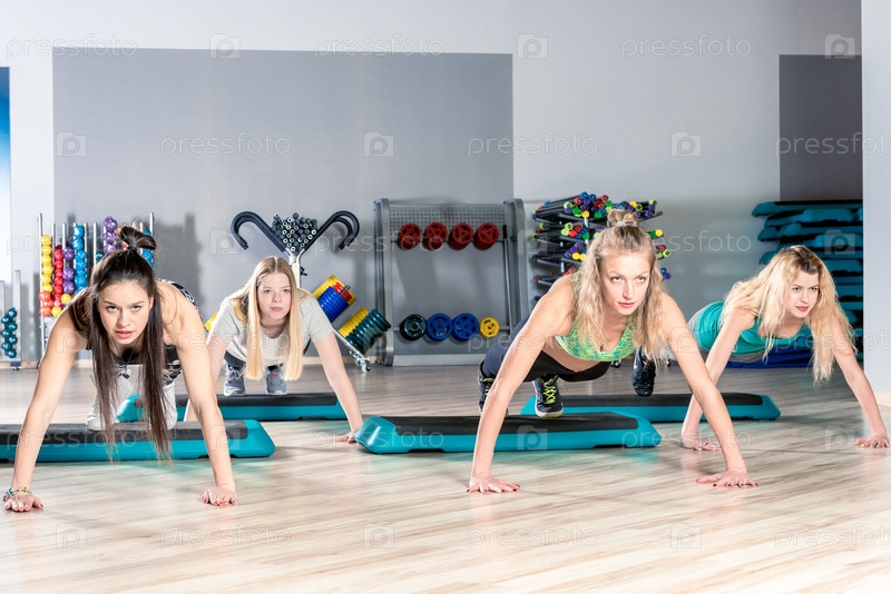 Формирование, портрет красивых девушек в спортзале во время тренировки