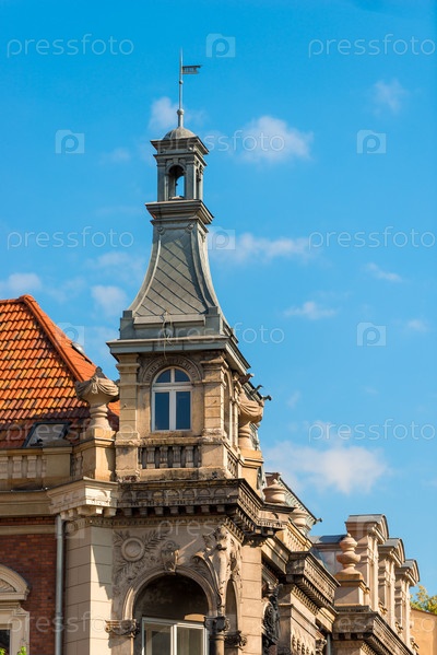 Детали архитектуры европейского города на фоне голубого неба