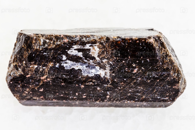 Кристалл дравитового турмалина на белом мраморе