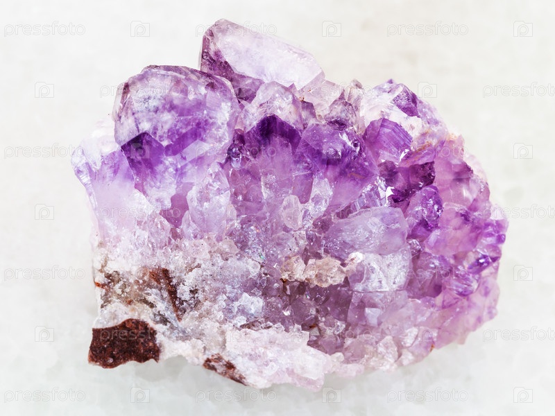 Грубая аметистовая кристаллическая друза на белом мраморе
