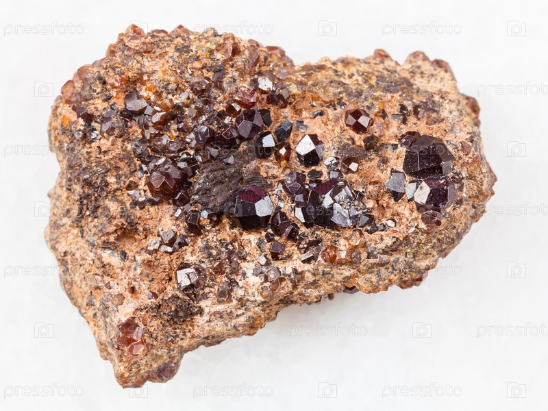 Андрадит гранат кристаллы на камне на белом мраморе