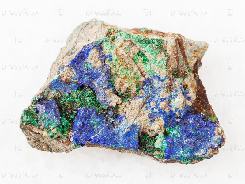 Синий азурит и зеленый малахит на грубом камне