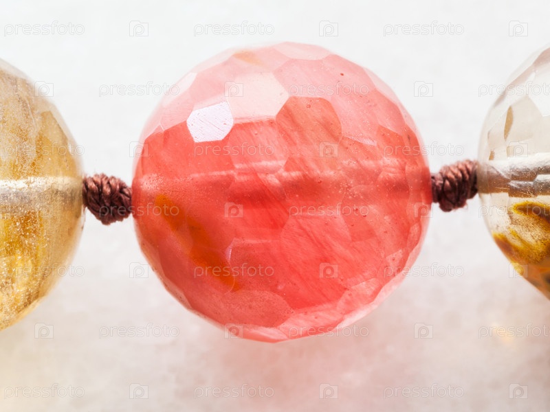 Ожерелье из розового кварца драгоценных камней на мраморе