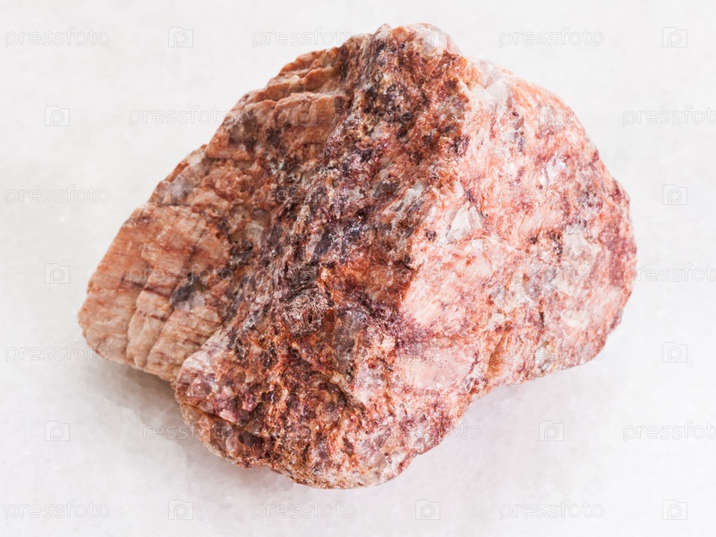 Сырой розовый гранитный камень на белом мраморе