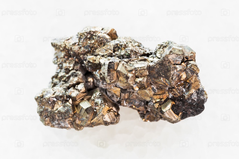 Камень пирита на белом мраморе