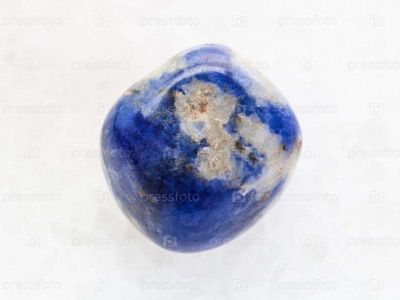 Полированный драгоценный камень Sodalite на белом мраморе