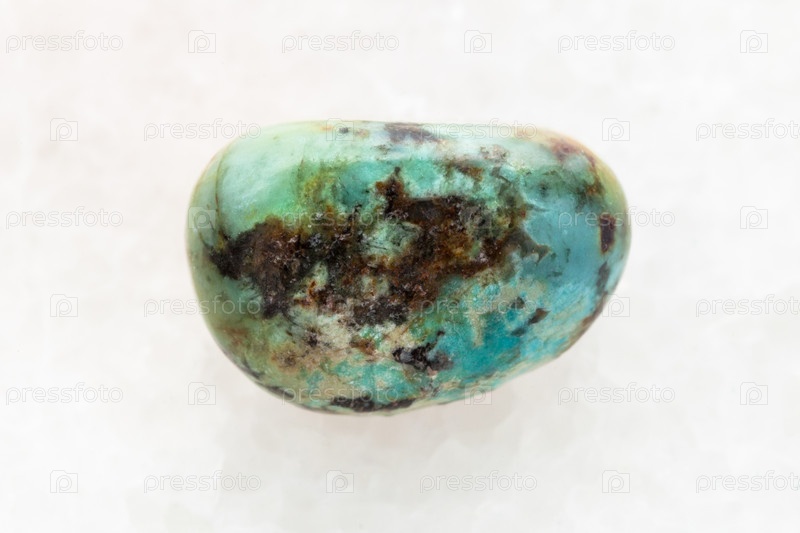 Полированный бирюзовый драгоценный камень на белом мраморе