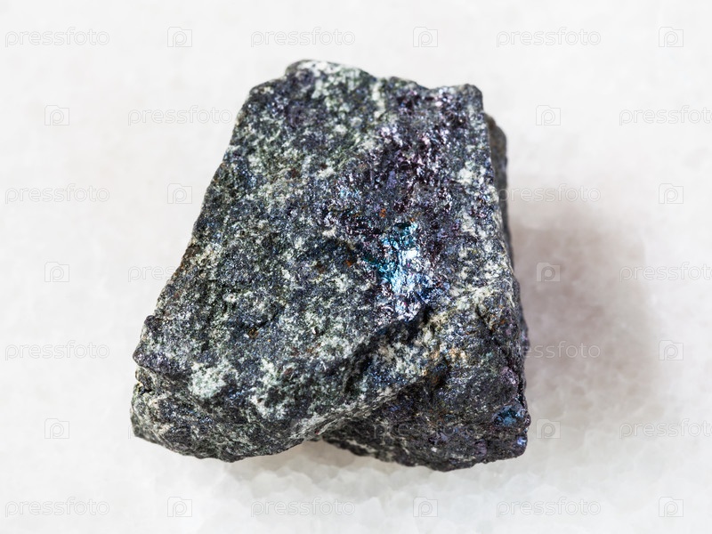 Грубый борнитовый камень на белом мраморе
