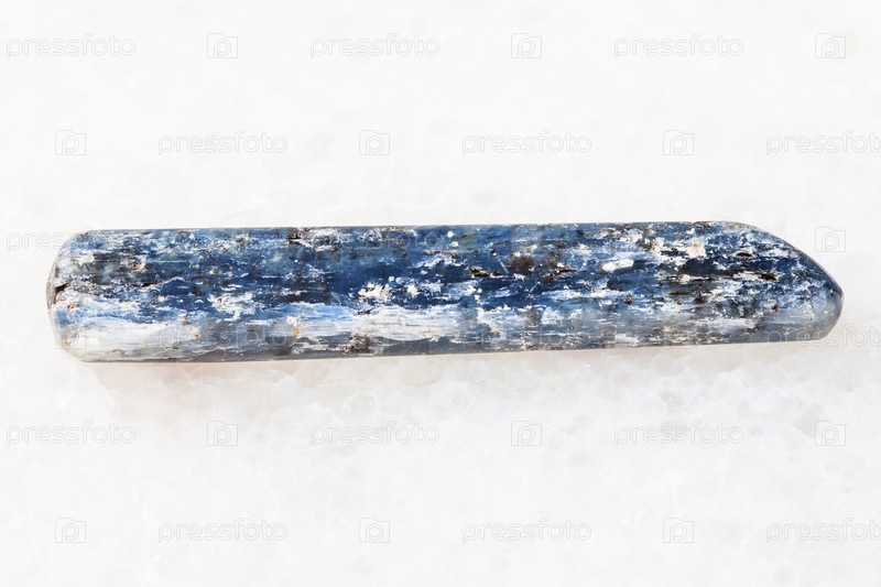 Полированный кристаллический драгоценный камень кианита на белом мраморе