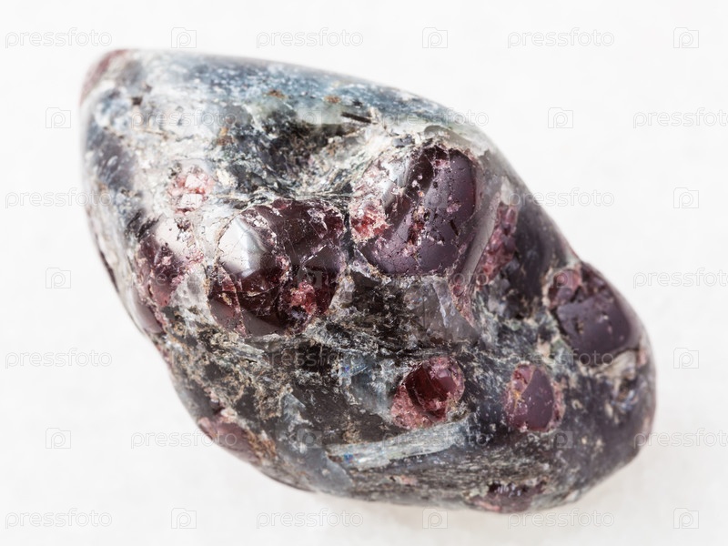 Полированные кристаллы граната Алмандина на белом мраморе