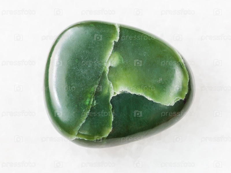 Полированный зеленый нефритовый драгоценный камень на белом мраморе