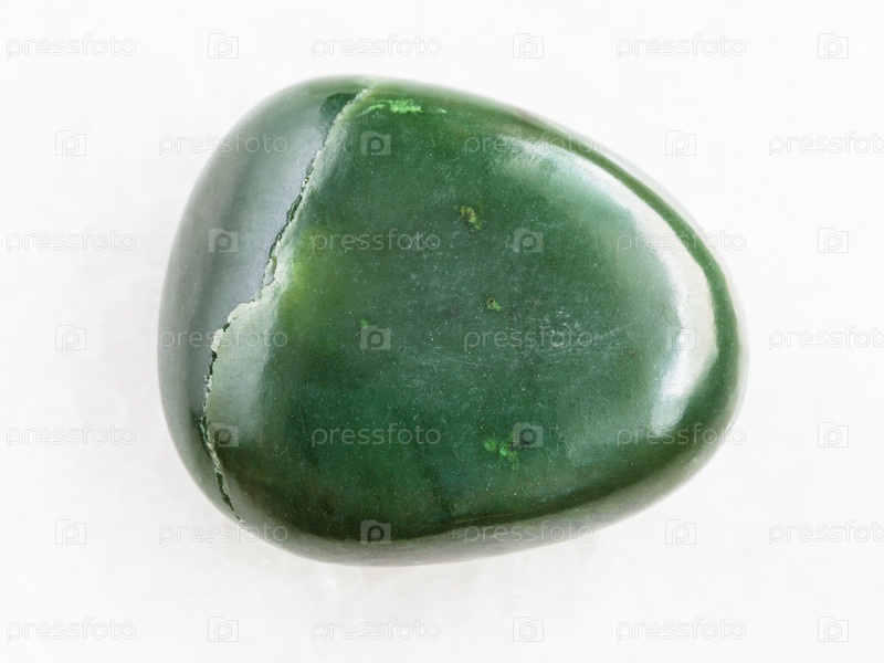 Выпал зеленый нефритовый драгоценный камень на белом мраморе