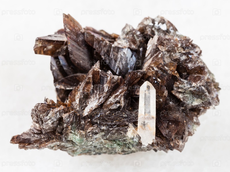 Сырье кристаллов аксинитового камня на белом мраморе