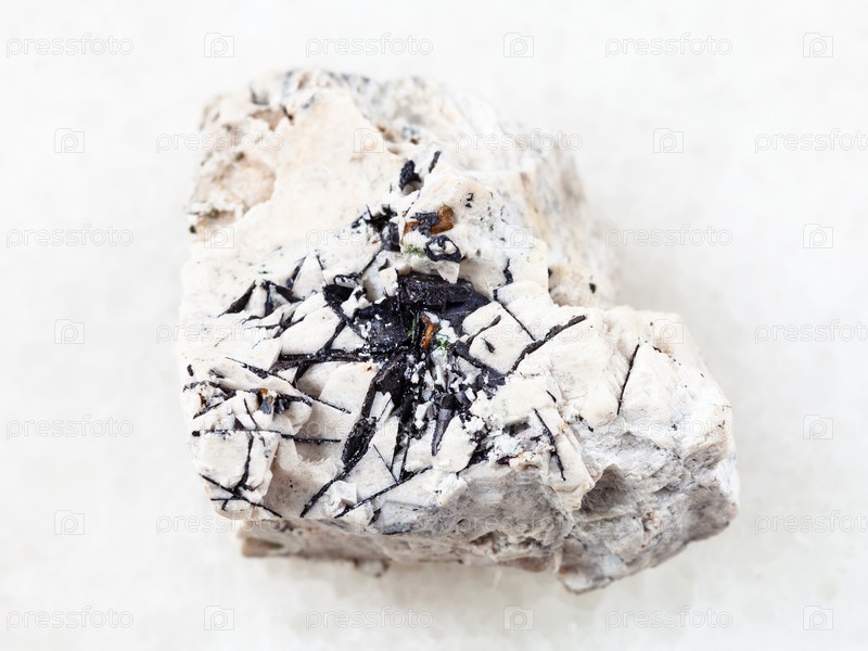 Ильменит черные кристаллы на грубом камне на белом
