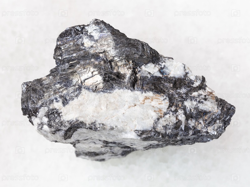 Вена бисмутинита в сыром кварцевом камне на белом