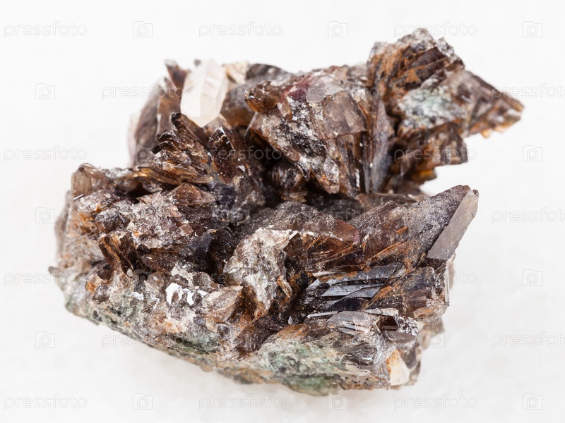 Грубые кристаллы аксинитового камня на белом