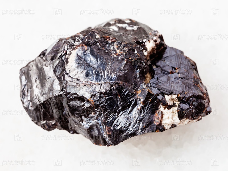 Грубый камень сфалерита на белом мраморе
