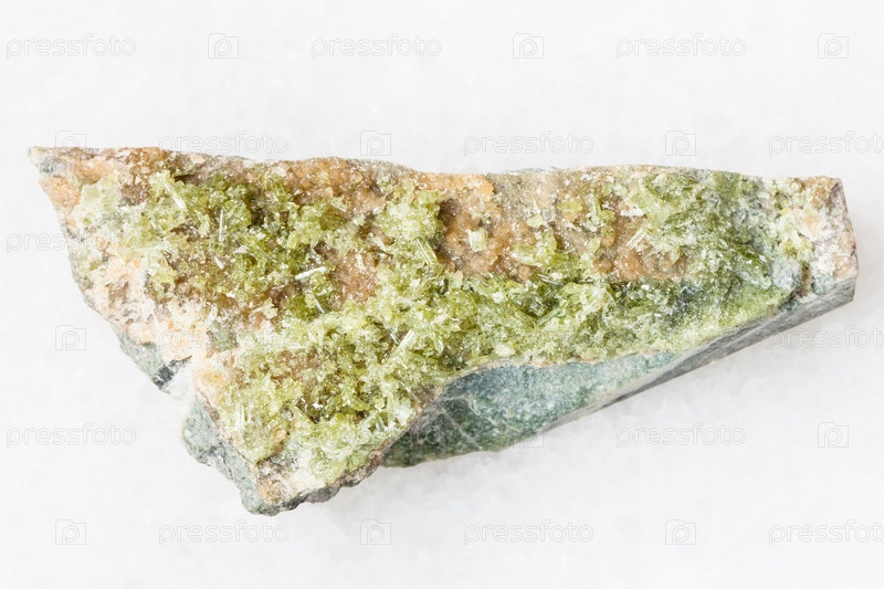 Необработанный кристалл зеленого Везувианового драгоценного камня на белом