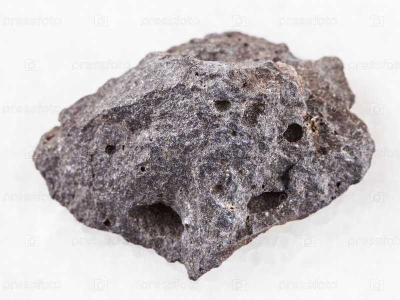 Камень из серого базальтового камня на белом мраморе