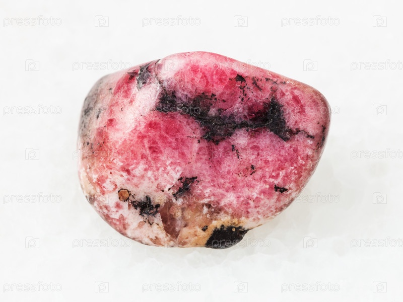 Полированный розовый драгоценный камень родонита на белом