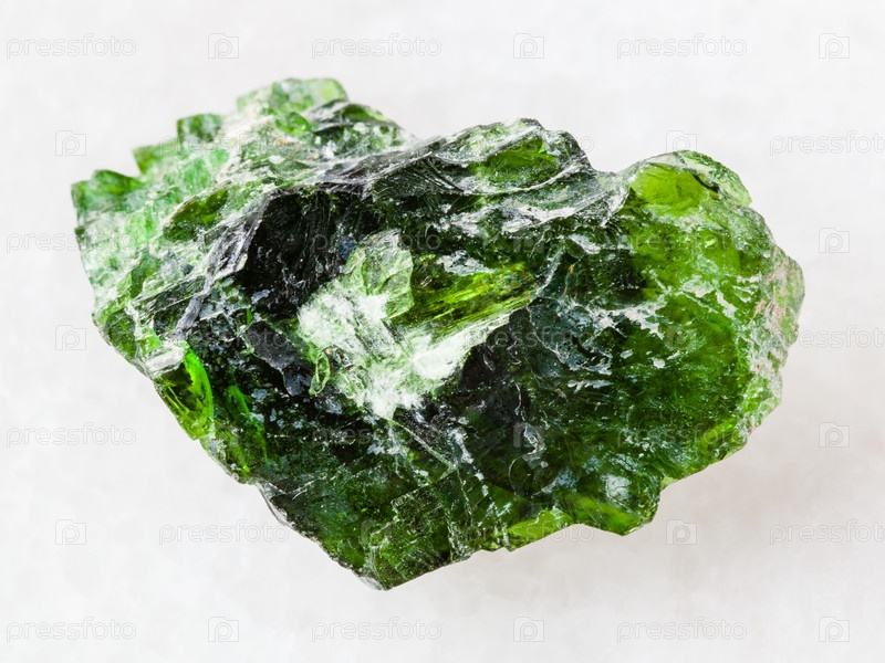 Грубый кристалл хромового диопсидного драгоценного камня на белом