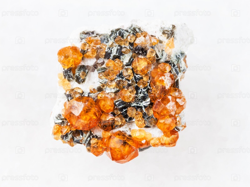 Грубые кристаллы спесартинового граната на белом