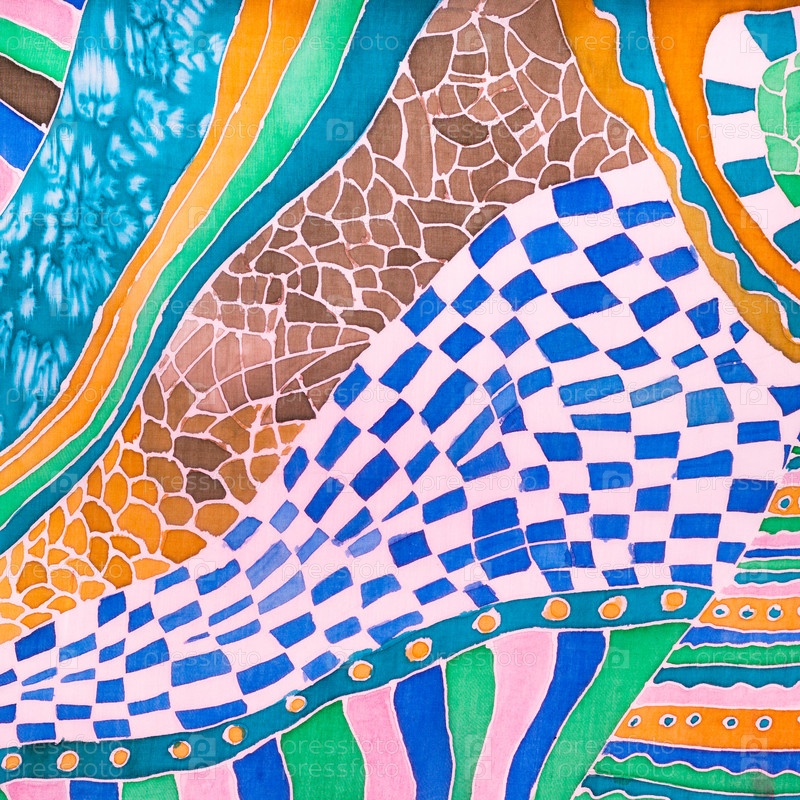 Украшение на шелковом шарфе, нарисованном в технике батика