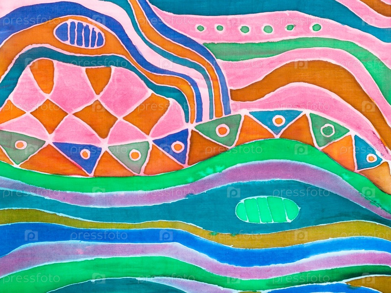 Абстрактный рисунок на шелковом шарфе в технике батика