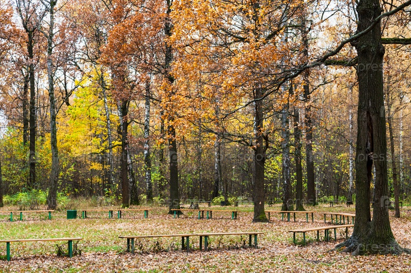 Оукс возле зоны отдыха в городском парке осенью