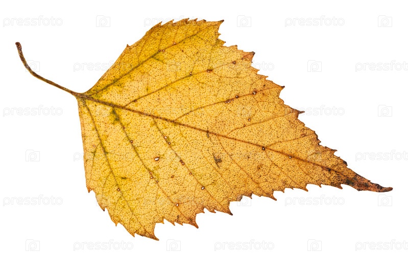 Павший лист березы, изолированный на белом