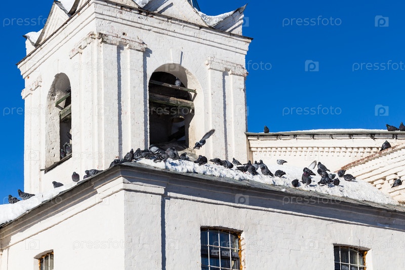 Голубь на крыше старой колокольни в городе Суздаль
